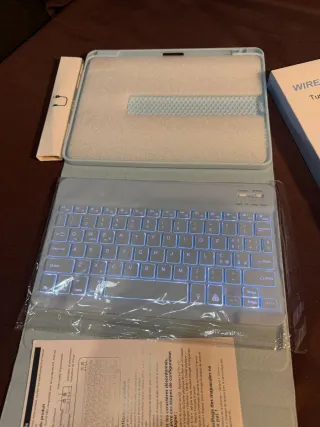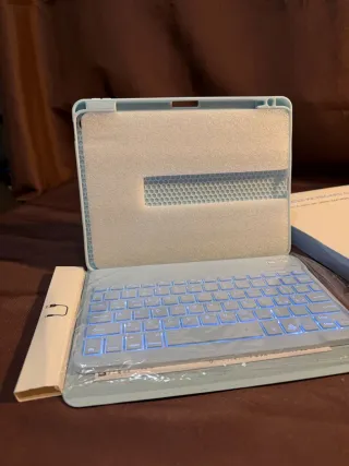 Más GANGAS EN MI PERFIL para iPad Air 5th Generation, nuevo a estrenar, sin uso. Abierto solo para fotos, aún con plásticos y embalaje original. 🔹 Características: ⌨️ Teclado Bluetooth desmontable 💡 Retroiluminación (muy cómodo de noche) 🔋 Batería recargable (USB-C) 🧲 Teclado magnético 📐 Ángulos de visión ajustables 🛡️ Funda protectora 360º ✏️ Soporte para Apple Pencil 📱 Compatible con iPad Air 5ª gen (y Air 4) 📦 Incluye: ✔ Funda con teclado ✔ Cable de carga USB-C ✔ Caja y manual
