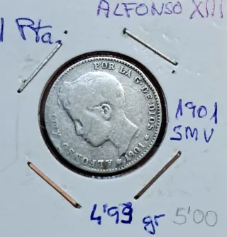 1 Pta Alfonso XIII 1901 SMV Plata.