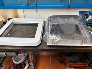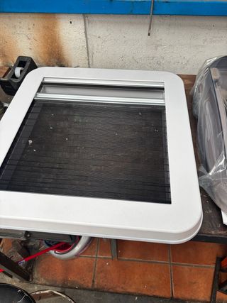 Claraboya de techo para autocaravana o furgoneta camper. Nueva sin entrenar,por abandono de proyecto Medidas 40x40 - Marco blanco. - Rejilla interior negra.