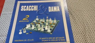 Set de juegos de mesa de ajedrez y damas con tablero y piezas de cristal. - Tablero de cristal con casillas alternas transparentes y esmeriladas. - 32 piezas de cristal para ajedrez. - 24 piezas de cristal para damas. - Medidas del tablero: 25 x 25 cm.