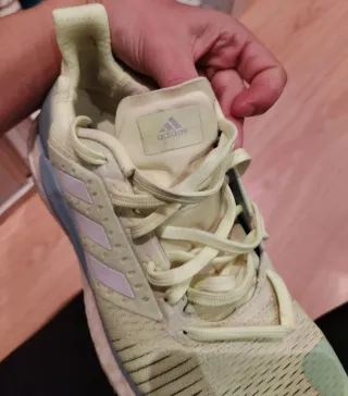 Zapatillas deportivas Adidas en tonos azules y amarillos. Perfectas para el día a día o para hacer deporte. - Diseño moderno y cómodo. - Tres rayas laterales icónicas de la marca.