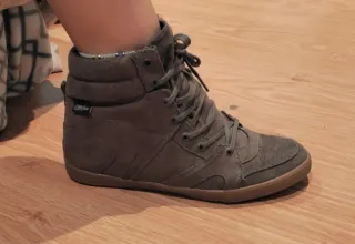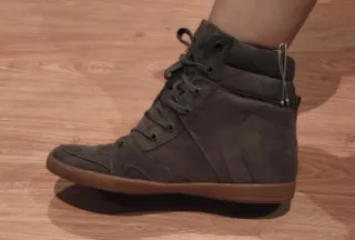 Botín con cuña interior en tonos grises y marrones. - Diseño de caña alta. - Cierre con cordones. - Detalle de perforaciones. - Etiqueta de marca en el lateral.