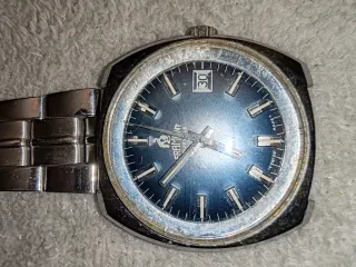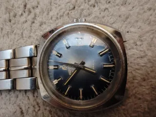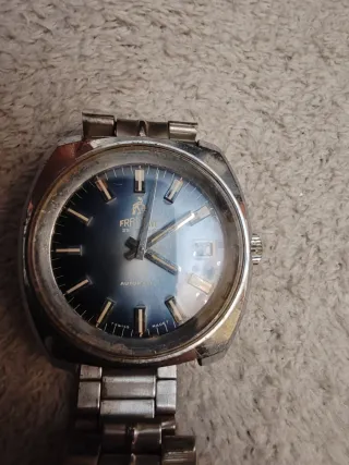 Reloj de pulsera Framont automático, ideal para coleccionistas o para reparar. - Esfera azul. - Ventana de fecha. - Brazalete de metal. - Fabricado en Suiza.