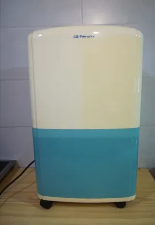 Deshumidificador de la marca Orbegozo con una capacidad de 18 litros. Su diseño combina los colores beige y azul, aportando un toque moderno. - Capacidad de 18 litros. - Diseño bicolor beige y azul. - Ruedas para facilitar su movilidad.
