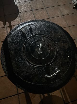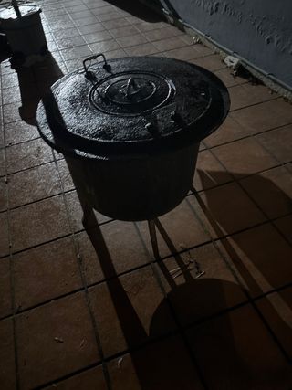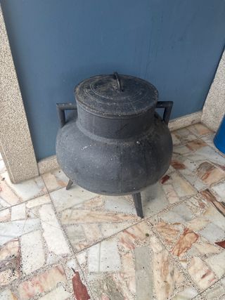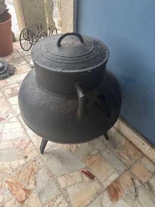 Olla antigua de metal con tapa. - Diseño robusto y clásico. - Asa en la tapa para facilitar su manejo. negociable