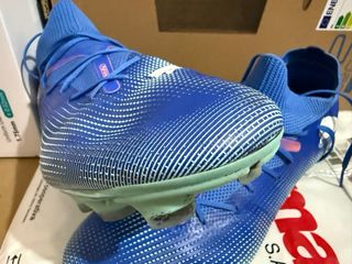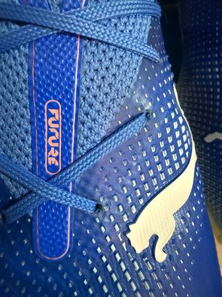 Botas de fútbol Puma modelo Future en color azul y blanco. Diseñadas para un buen agarre y comodidad.Usadas una vez pues no se adapta con esos tacos. - Parte superior con textura. - Cierre de cordones. - Detalle de logo Puma.