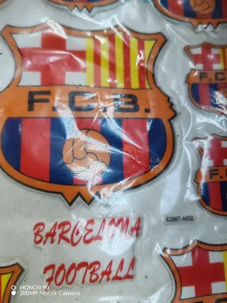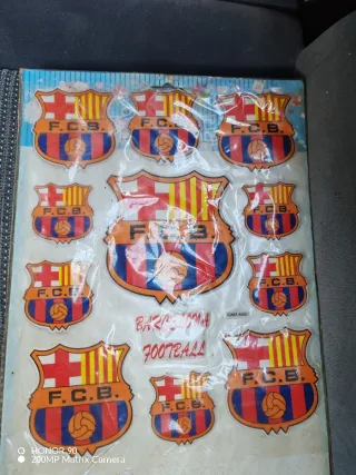 Lote de pegatinas del FC Barcelona. - Diseño del escudo del club. - Incluye texto 'FCB' y 'Football'. - Varias unidades disponibles.