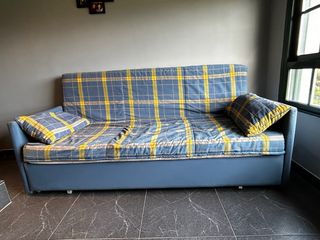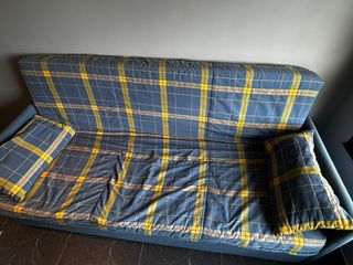 Sofá cama plegable azul y amarillo