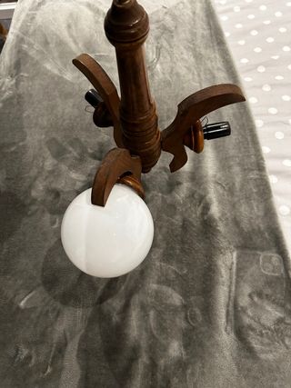 Lámpara de madera con globo de cristal