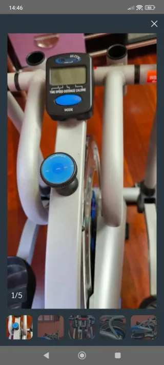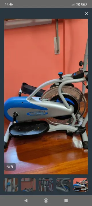 Bicicleta elíptica marca Orbitrek, modelo Elite. Diseñada para un entrenamiento cardiovascular completo. - Color principal: azul y plateado. - Diseño ergonómico para mayor comodidad. - Volante de inercia visible.