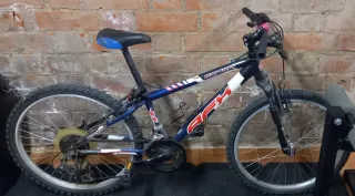 Bicicleta infantil de montaña marca Conor, modelo AFX. - Ruedas de 26 pulgadas. - Frenos delanteros y traseros. - Cambio de marchas. - Suspensión delantera. - Color azul y blanco. Precio a convenir