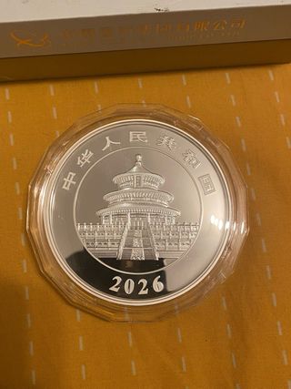 Moneda conmemorativa de plata de la edición 2026 de la serie Panda 150 gramos. Comprada en Beijing por lo que no tengo factura. Preferiblemente solo envios: Pago por bizum, paypal, crypto (flexible) Cualquier duda por mensaje