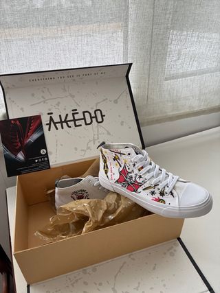 Zapatillas altas de la marca Akedo inspiradas en Stranger Things. Diseño llamativo y original. - Talla 39. - Estampado multicolor y blanco. - Cierre con cordones.