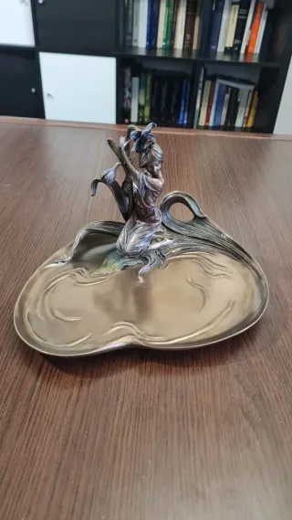 Elegante bandeja decorativa con diseño Art Dèco. Figura central de una dama. Moldeada en porcelana fría y Bronce con hermosos detalles y excelentes acabados dándole un aspecto realista y vintage Nueva en su caja original Más modelos en mi perfil Medidas 26x21x15cem. Perfecta para decorar cualquier espacio de tu hogar o cómo regalo original Ideal para sostener pequeños objetos Sé hacen lotes al gusto y necesidades con cualquiera de los artículos de mi perfil