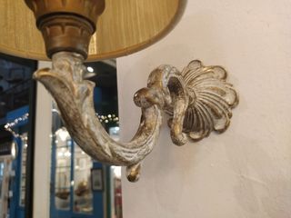 Elegante aplique de pared con un diseño clásico y un acabado que le da un toque vintage. La pantalla de tela plisada beige complementa perfectamente la estructura. - Fabricado en bronce con pátina de desgaste. - Diseño para montaje en pared. - Bombilla E-14. - 21 cm de larga. (Solo aplique)