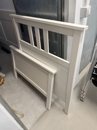 Contactar al 660554307 Se venden dos camas de madera maziza con acabado blanco, cada una con su colchón. Medidas 1.90 x 100 Altura regulable - Estructura de madera completa con somier de valdas. - Incluye colchón para cada cama con funda.