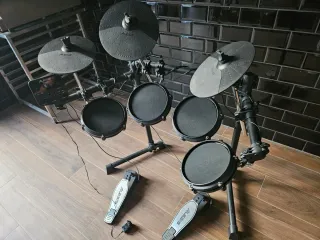 Batería electrónica Alesis Turbo Mesh con parches de malla. - Módulos de sonido y pads de malla. - Incluye módulo de sonido, pads, pedales y soporte. - Diseño compacto y fácil de montar. Tal solo un par de horas de uso.