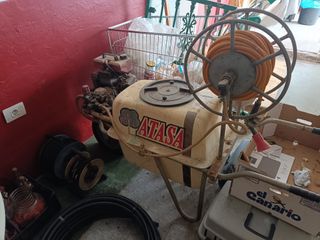 Carretilla sulfatadora de 100 litros de la marca Atasa. Ideal para trabajos de fumigación. - Capacidad del depósito: 100L. - Manguera enrollada en carrete. - Motor de combustión.