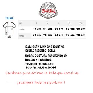 Camiseta nueva a estrenar, escríbeme para elegir la talla. Dime cualquier duda que tengas. Muchas gracias Tallas disponibles, S ( 48 /70 CM)- M ( 51/ 72 CM) -L (54/ 74 CM) -XL( 57/ 76 CM) - XXL ( 60/ 78 CM)