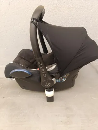 Silla de coche para bebé del grupo 0, marca Maxi-Cosi. - Color negro y gris. - Incluye capota. - Arnés de seguridad de 5 puntos. - Reductor para recién nacidos. - adaptadores para Bugaboo