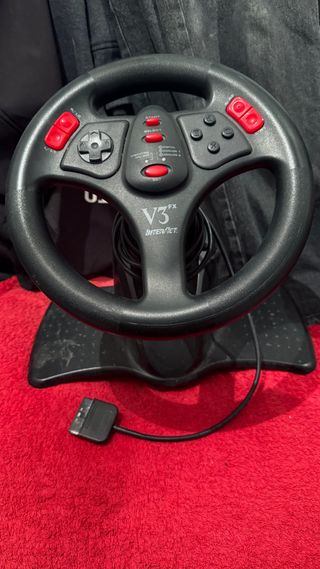 Volante de conducción para PlayStation 1 y 2. - Modelo V3 FX. - Incluye cable de conexión.