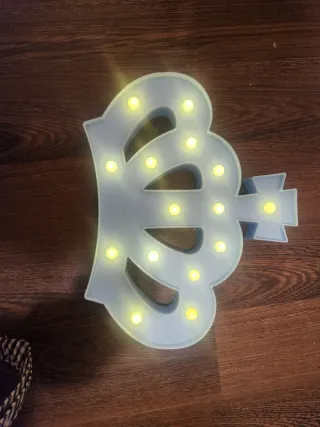 Lámpara decorativa con forma de corona, ideal para habitaciones infantiles. Funciona con pilas - Diseño de corona. - Color azul claro. - Luces LED amarillas.