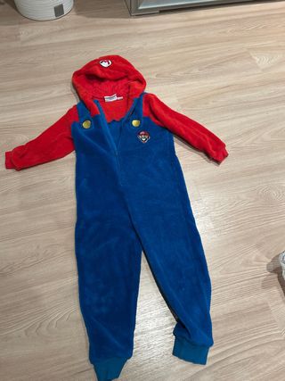 Disfraz enterizo de Mario Bros, perfecto para fiestas o para estar cómodo en casa. - Diseño inspirado en el personaje de Mario. - Color azul y rojo. - Con capucha. - Cierre de cremallera frontal.