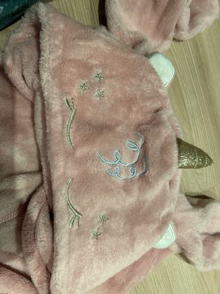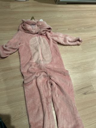 Disfraz de unicornio rosa, perfecto para fiestas o para estar cómodo en casa. Es un mono completo con capucha. - Material suave y cálido. - Diseño de unicornio con cuerno y orejas. - Cierre de cremallera frontal. - Es bastante estrecho, da poca talla