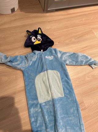 Disfraz de Bluey para niños, perfecto para fiestas o para jugar en casa. Es un mono completo con capucha. - Mono azul con detalles del personaje. - Capucha con la cara de Bluey y orejas. - Cierre de cremallera frontal.