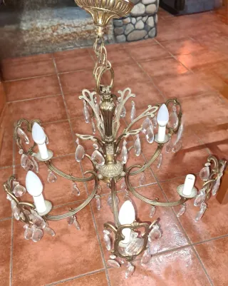 Elegantes lámparas de techo con detalles en bronce y cristal. - Diseño clásico y sofisticado. - Aporta un toque de distinción a cualquier estancia. - Ideal para salones o comedores.