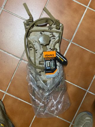 Mochila de hidratación Source con diseño de camuflaje desértico. - Tejido Cordura. - Sistema de hidratación integrado. - Color beige y multicolor.