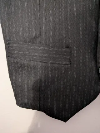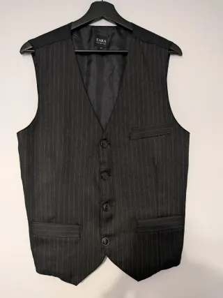 Chaleco de vestir de la marca Zara, ideal para complementar tu atuendo. - Diseño de rayas verticales. - Cuello en V. - Cierre de botones. - Bolsillos frontales.
