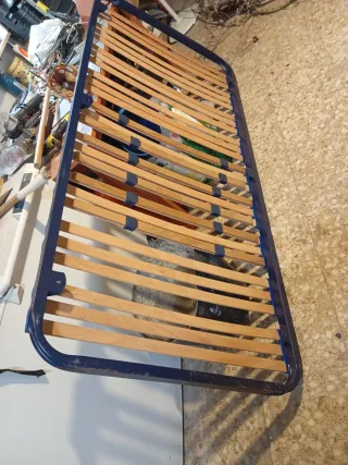 Somier con estructura metálica y láminas de madera. - Diseño resistente y duradero. - Combina metal y madera para un soporte óptimo.
