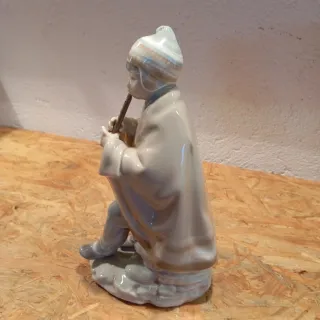 Figura de porcelana de la marca Nao, que representa a un niño tocando la flauta. La pieza tiene un diseño delicado y detallado. 24cm de altura - Material: Porcelana. - Marca: Nao. - Representación: Niño con flauta.