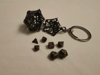 Set de dados para juegos de rol, ideal para llevar contigo. Incluye un llavero con un dado grande y un set de minidados. - Llavero con diseño de dado. - Set de minidados de diferentes tipos. Iv