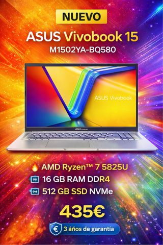 3años de garantia con factura i office 2024⭐️ 🧠 Procesador: AMD Ryzen™ 7 5825U — 8 núcleos, hasta 4,5 GHz para tareas multitarea y exigentes como edición ligera, trabajo o estudio.  🖥️ Pantalla: 15,6″ Full HD (1920×1080) con panel antirreflectante para comodidad visual todo el día.  💾 Memoria RAM: 16 GB DDR4 — enorme fluidez para múltiples programas abiertos.  ⚡ Almacenamiento: 512 GB SSD NVMe — arranque y apertura de apps rapidísimos.  🖼️ Gráficos: AMD Radeon Graphics integrados — suficiente para multimedia, vídeo HD y trabajo creativo ligero.  📶 Conectividad: Wi-Fi 6E y Bluetooth 5.3 — internet y accesorios estables.