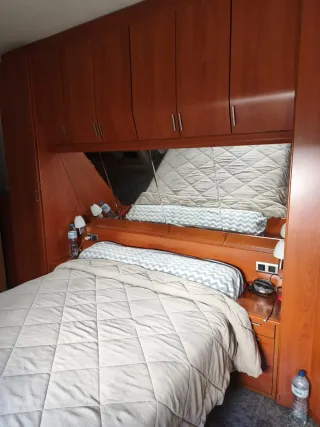 Se vende cama completa con colchón y mueble armario. - Cama con estructura de madera. - Colchón de 1,5 x 2m. - Lámparas integradas. - Espejos - Armarios de madera con puertas.
