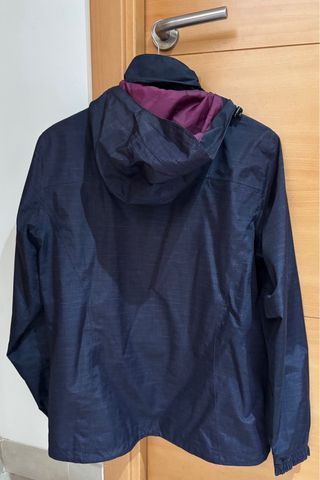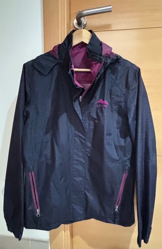 Cortavientos Crivit con capucha. - Un lado es negro y el otro morado. - Cremalleras en los bolsillos laterales. Talla M-L, equivalente a 44-46 de Lidl.
