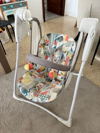 • 2 velocidades de balanceo para garantizar un ritmo relajante •3 posiciones de reclinado para una mayor relajación • Plagado compacto para facilitar el almacenamiento • Arco de juguetes giratorio con peluches • funda lavable • Funciona con pilas Esta nuevo, lo hemos utilizado 2veces