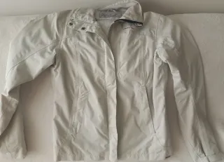 Cortavientos de la marca Quechua en color beige. Ideal para actividades al aire libre. - Cierre de cremallera frontal. - Bolsillos laterales. - Cuello alto. Usado de una vez