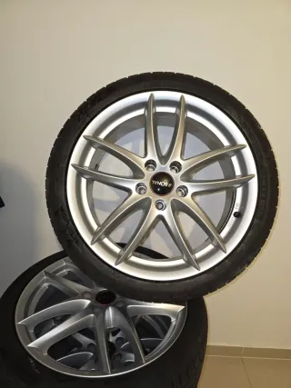 Juego de llantas de aleación en 16 pulgadas con neumáticos aún con algo de vida . - Diseño de 5 radios dobles. - Acabado plateado. Tornillería 5x112