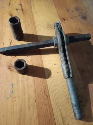 Herramienta robusta para tuercas de camión. - Mecanismo de carraca. - Construcción metálica.