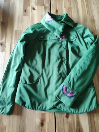 Cazadora ligeramente acolchada de la marca Skunkfunk. Presenta un diseño llamativo con detalles de arcoíris. - Color principal verde. - Detalles multicolor en cuello y puños. - Cierre de botones y cremallera - Bolsillos frontales con solapa y botón.