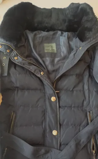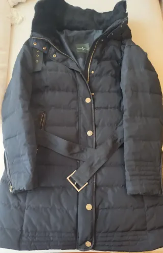 Elegante plumífero de la marca Roberto Verino en color negro. - Diseño acolchado. - Cinturón ajustable. - Cuello con detalle de pelo. - Cierre de cremallera y botones. - Bolsillos laterales con cremallera.