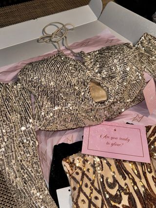 Top GLOWRIAS lentejuelas dorado talla 32/34