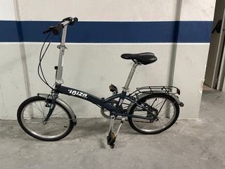 Bicicleta plegable BH Ibiza en color azul marino. Ideal para desplazamientos urbanos y fácil de guardar. - Cuadro de aluminio. - Ruedas de 20 pulgadas. - Portabultos trasero. - Guardabarros delanteros y traseros. Recientemente se le ha hecho un mantenimiento completo y se ha mejorado un poco. - Rodamientos de ruedas y ejes engrasados. - Manetas nuevas Avid - Frenos nuevos Avid Single Digit 3 con zapatas nuevas. - Cables de freno y fundas nuevas - Cubiertas nuevas chaoyang - Sillin nuevo más cómodo que el original - Maneta de cambio nueva Shimano - Ajuste de los cambios - Puños nuevos La bicicleta va como nueva.