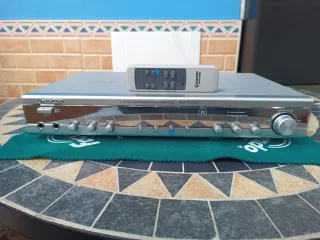 Se vende amplificador de potencia surround Skytronic junto con dos altavoces Philips. - Amplificador con controles de volumen, graves, medios, agudos y balance. - Selector de entrada (VCD, AUX, TUNER, DVD). - Altavoces con diseño moderno. - Bluetooth entrada en mando input azul (HW-BT)