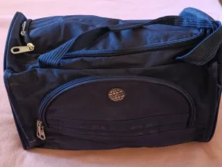 Práctica maleta de mano para viajes. - Compartimento principal con cierre. - Bolsillo frontal con cremallera. - Asas de mano y correa ajustable.