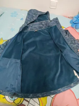 Chaqueta infantil con capucha, ideal para actividades al aire libre. - Diseño estampado en tonos azules y grises. - Cierre de cremallera frontal. - Capucha integrada.