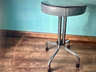 Este taburete vintage de los años 70 añade un toque retro a cualquier espacio. Su diseño combina materiales duraderos y un acabado elegante. - Base de metal cromado. - Asiento acolchado con acabado en piel sintética. - Patas estables con protectores.